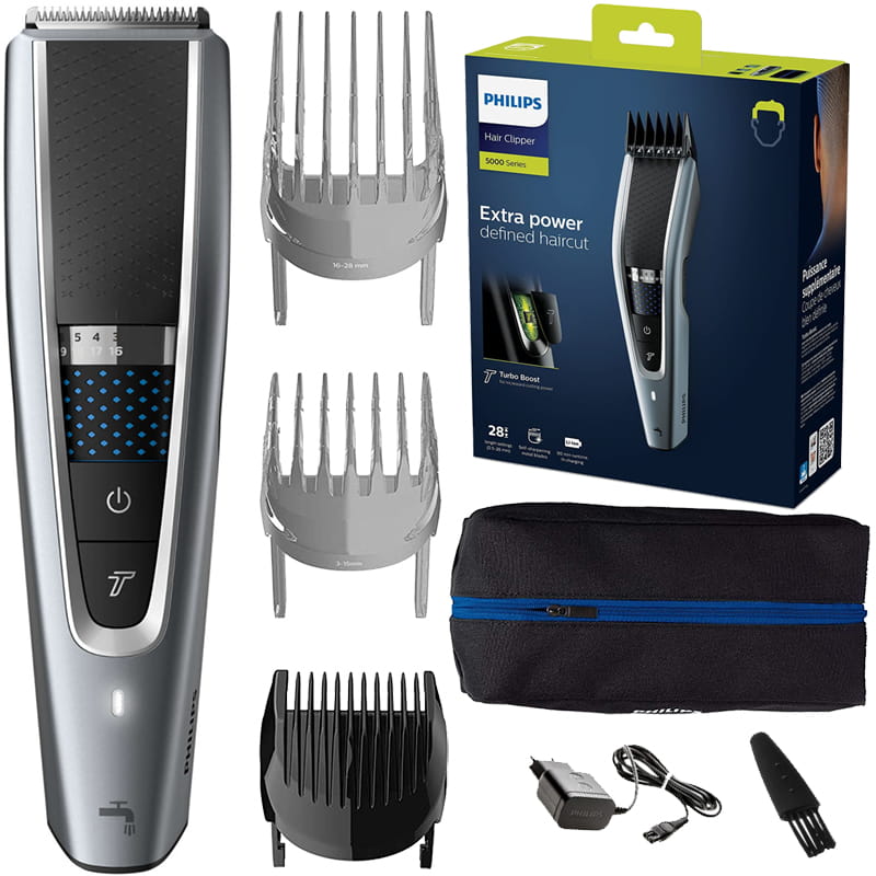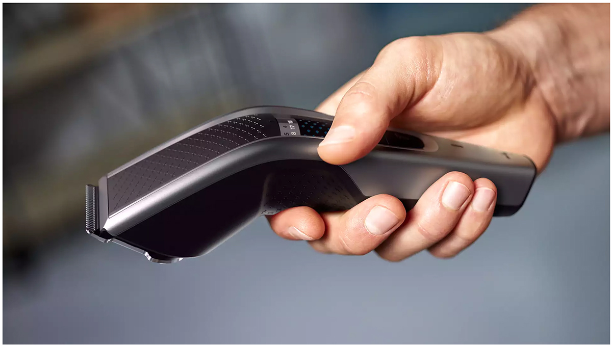 - Ergonomiczny uchwyt zapewnia większą wygodę i kontrolę - Maszynka do strzyżenia włosów z serii 5000 została zaprojektowana z myślą o wygodnym użytkowaniu i łatwej obsłudze. Specjalna faktura i uchwyt pozwalają z łatwością przesuwać maszynkę i przycinać włosy na całej głowie.